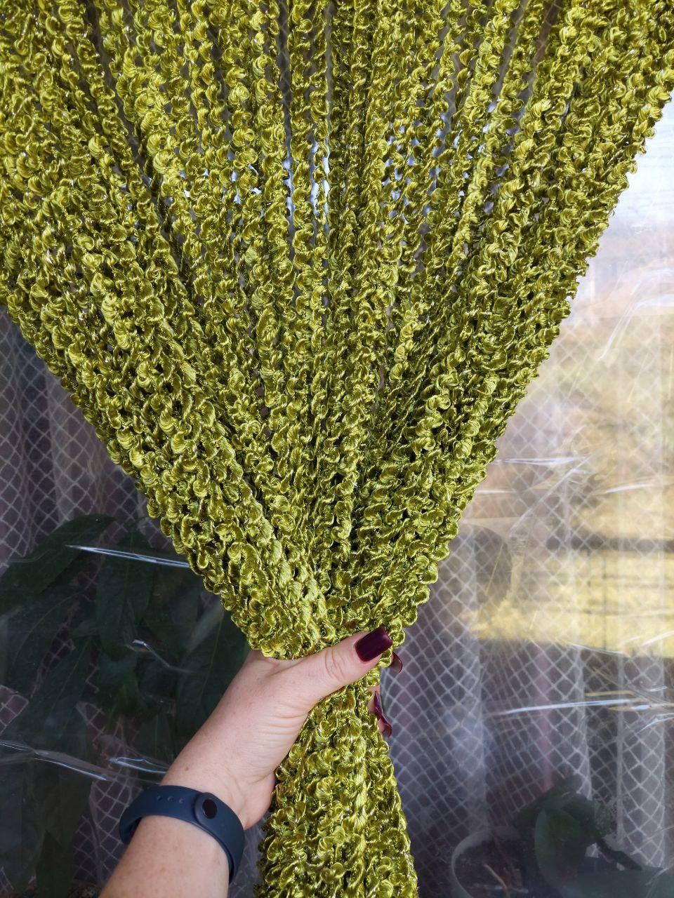 Штори нитки спіральні хмари з люрексом однотонні № 19 оливковий 3 м на 2.8 м